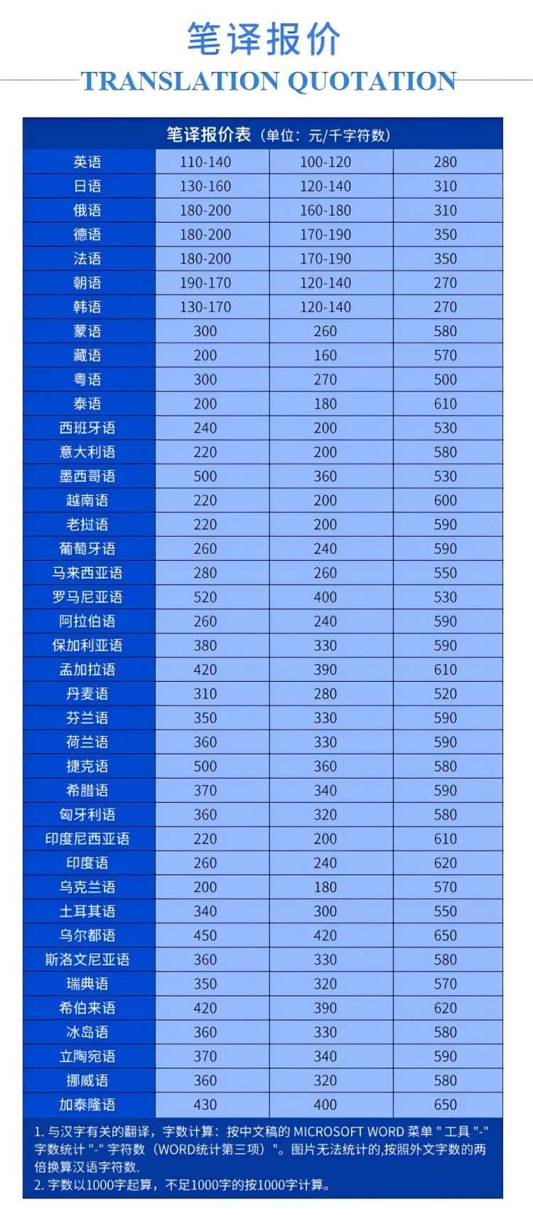 翻译价格